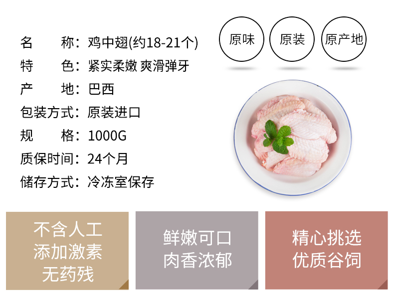 肉管家巴西鸡翅中新鲜冷冻2斤冰冻鸡翅中鲜生冻鸡翅膀可乐鸡翅1kg
