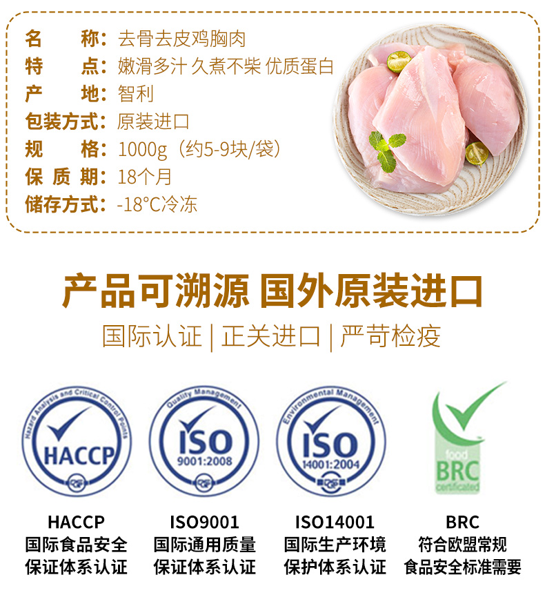 肉管家新鲜鸡胸肉智利进口1kg健身餐沙拉鸡胸肉鲜冷冻鸡脯肉生鲜