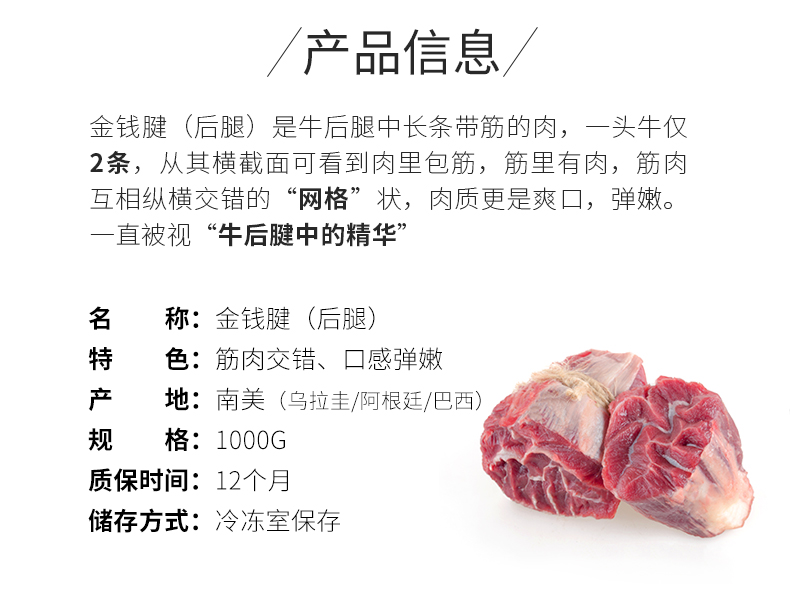 肉管家南美进口金钱腱1000g牛腱子芯新鲜牛腱冷冻生鲜牛肉类