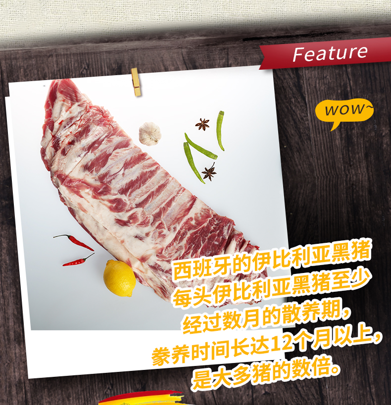 【肉管家】西班牙伊比利亚黑猪肋排1750g排骨肋排进口黑猪肉烧烤