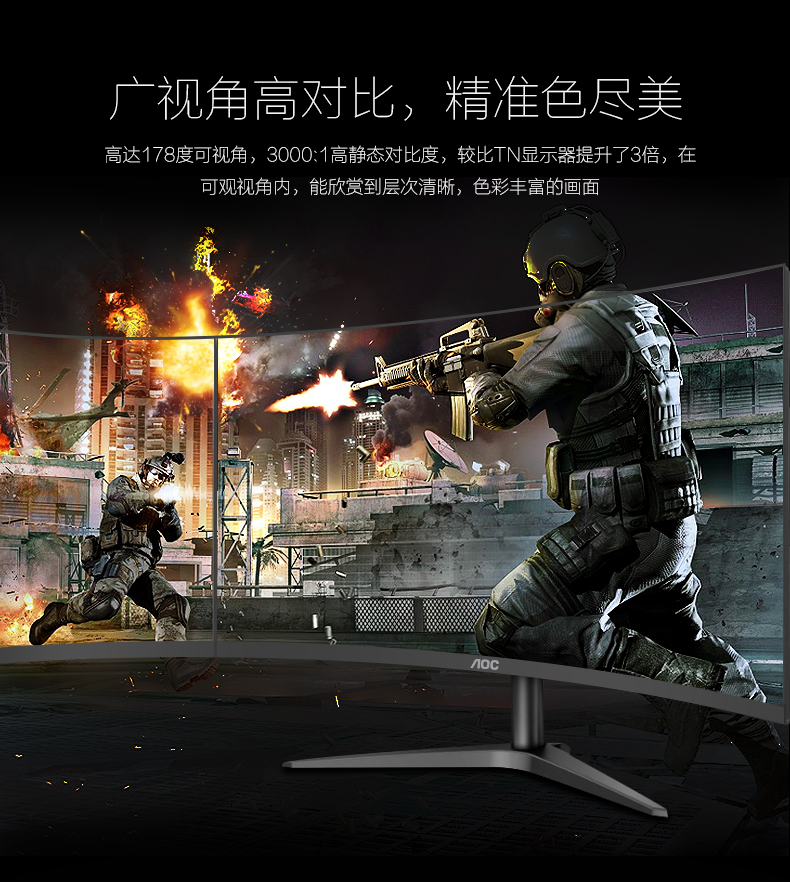 AOC C24B1H 23.6英寸护眼曲面VA屏幕台式液晶显示屏护眼HDMI窄边