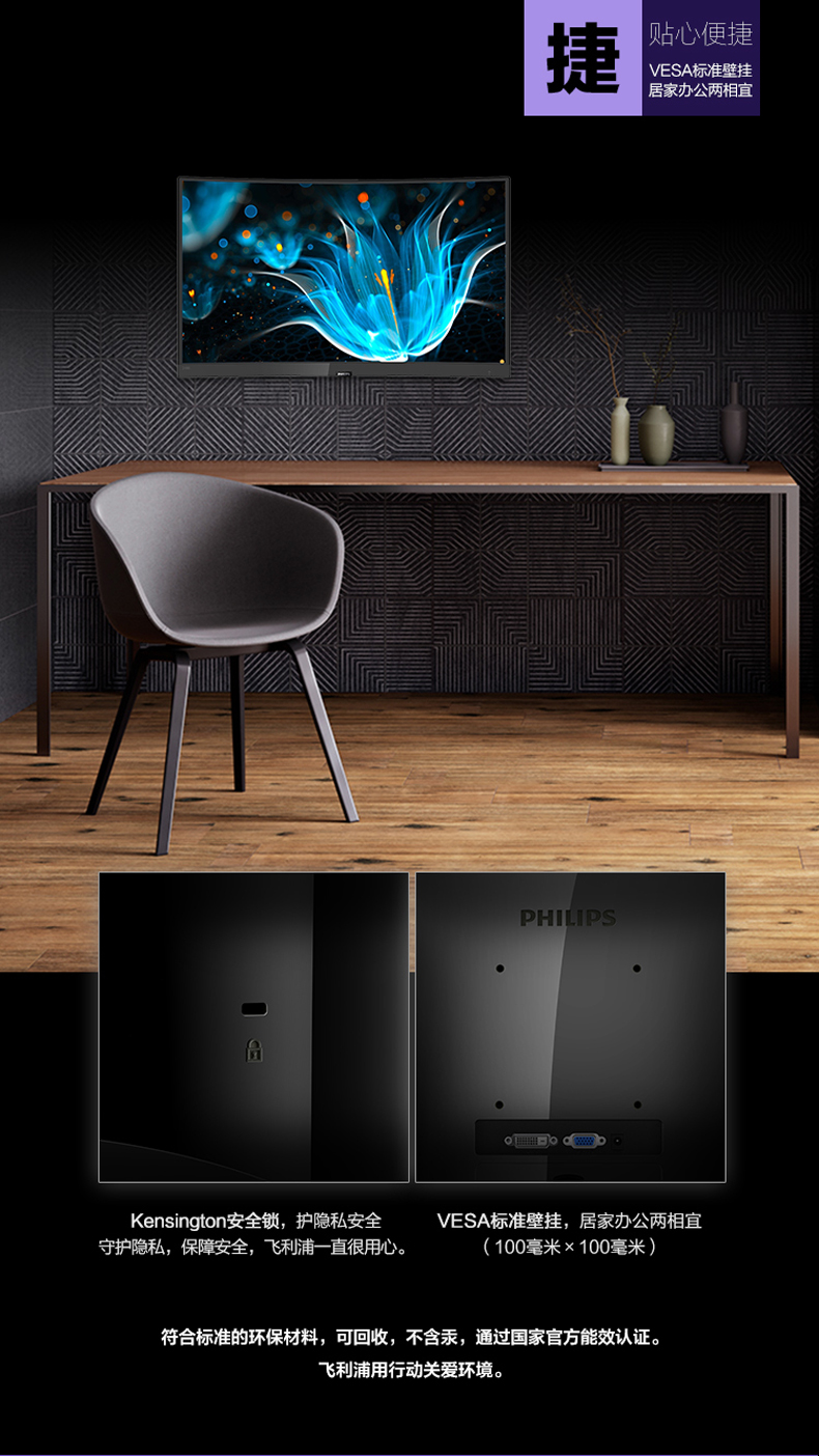 飞利浦 248E9Q 24英寸台式电脑电竞曲面显示器吃鸡游戏显示屏HDMI