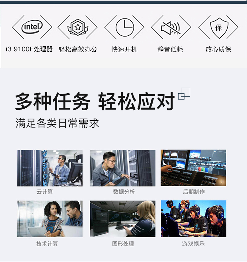办公电脑i3 9100F华硕主板主机企业客服家用图形设计游戏台式组装机全套