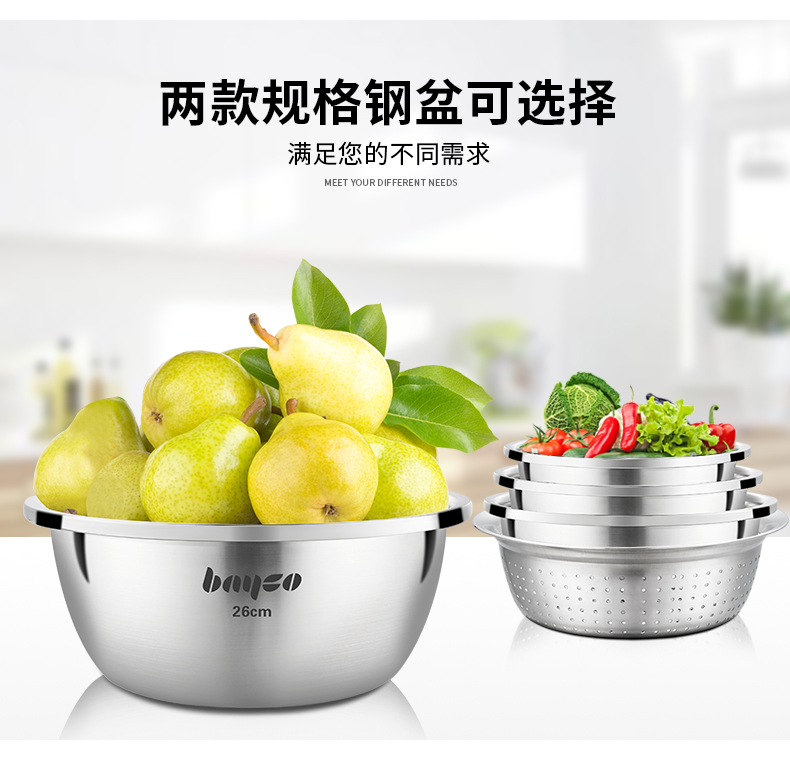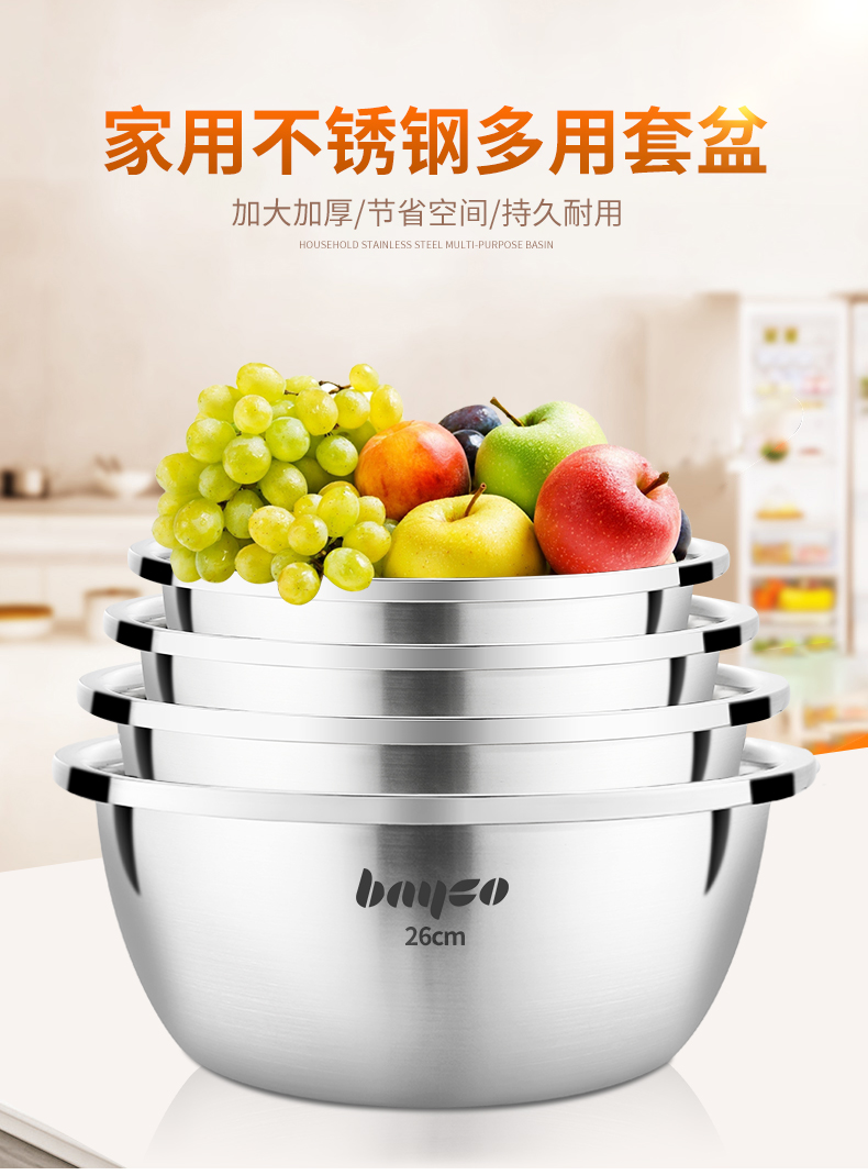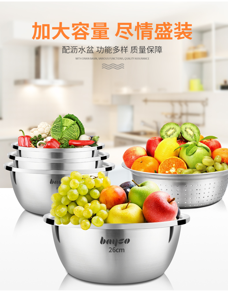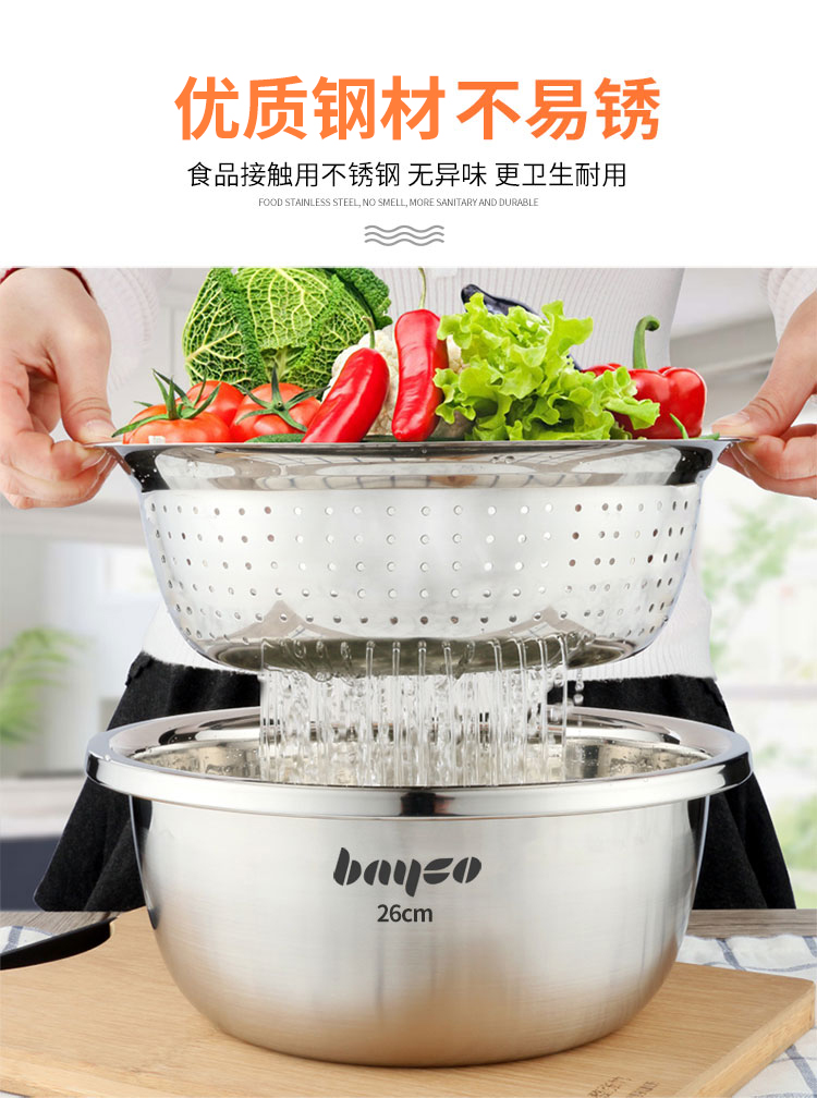 不锈钢盆洗菜盆打蛋盆家用厨房沥水篮饭盆碗和面盆米筛漏汤盆