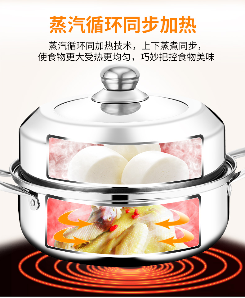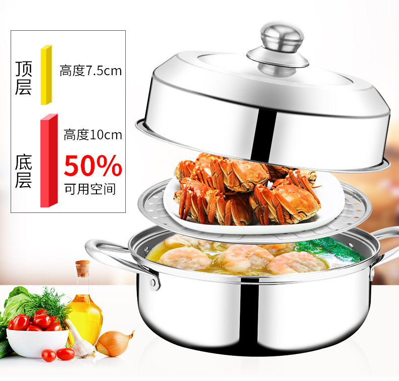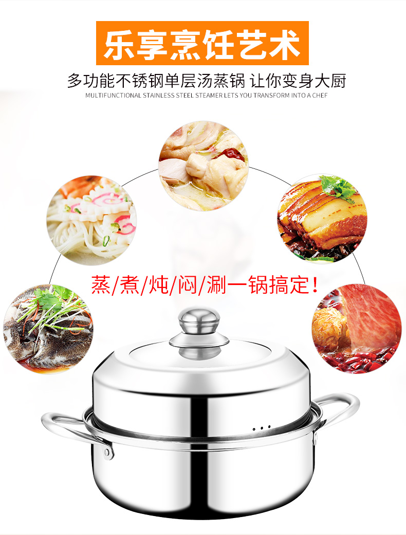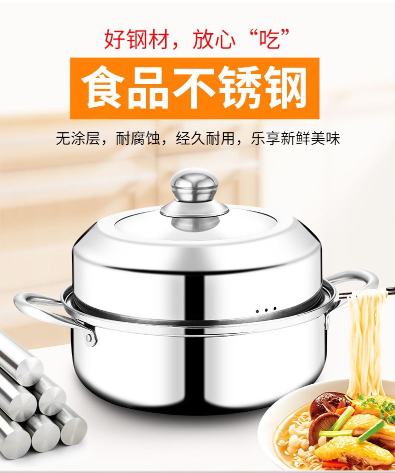 蒸锅家用煤气灶用加厚不锈钢多层汤锅蒸笼电磁炉蒸煮锅1层小