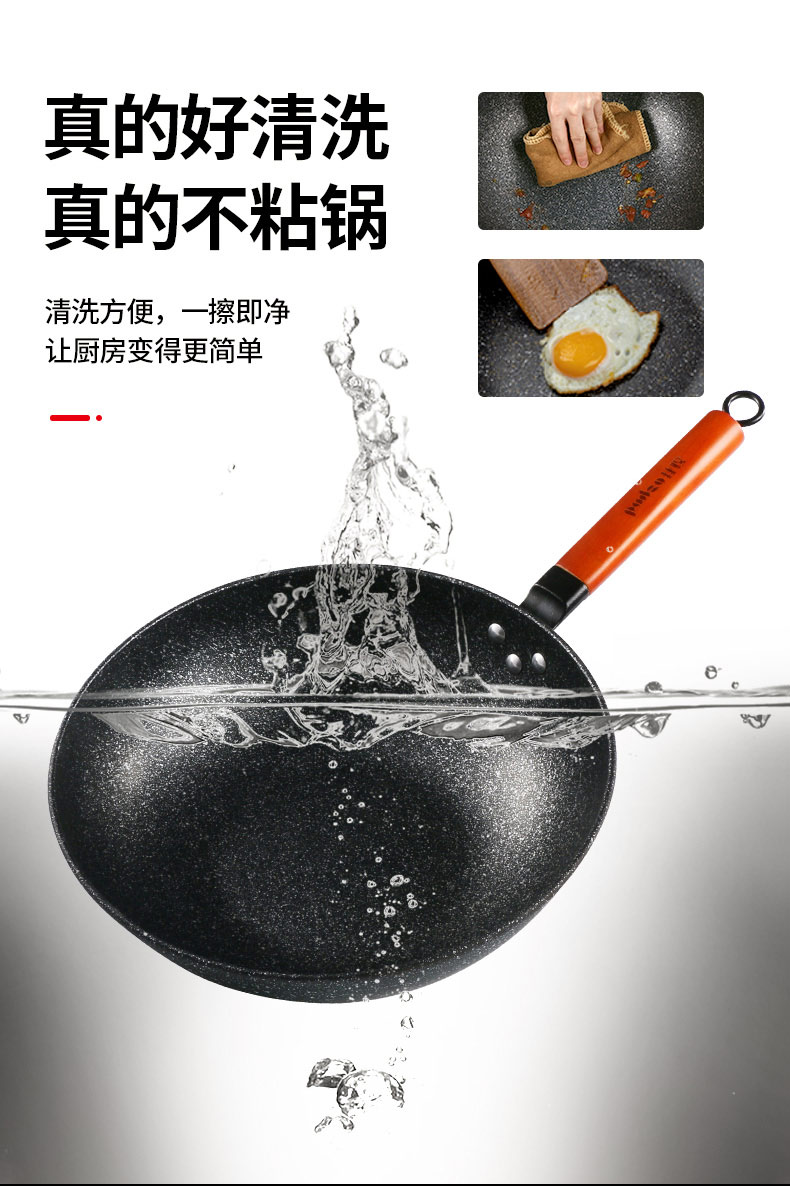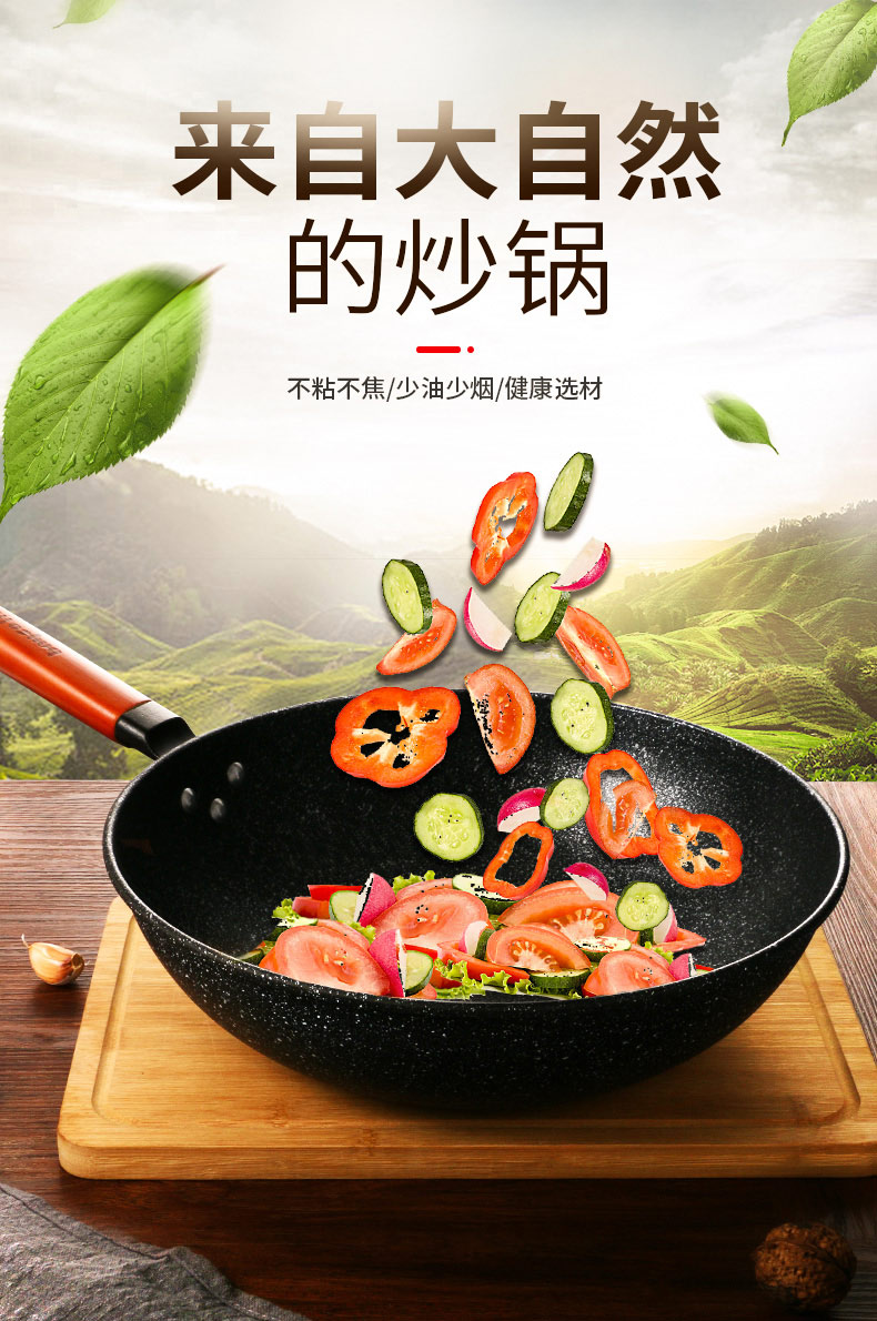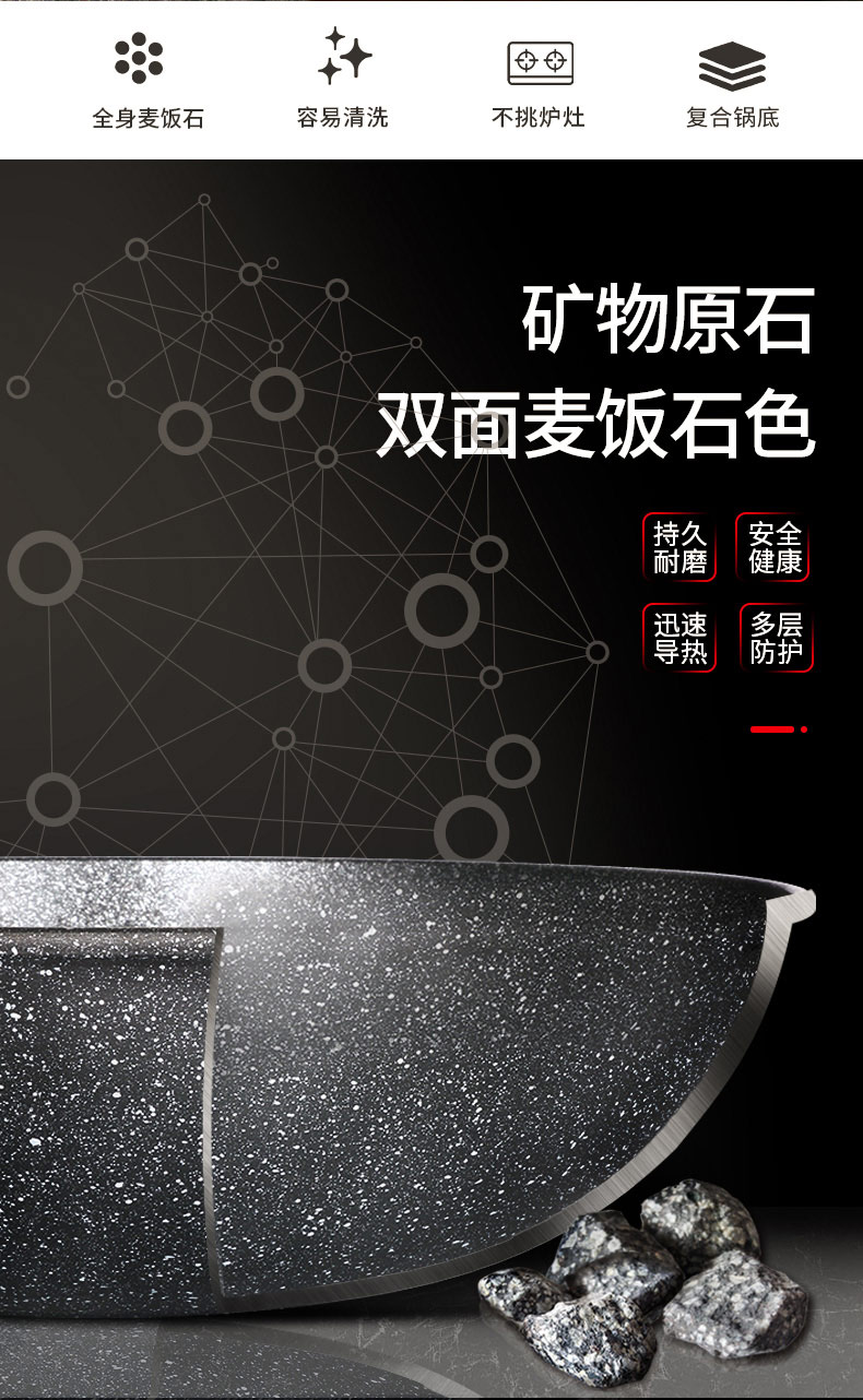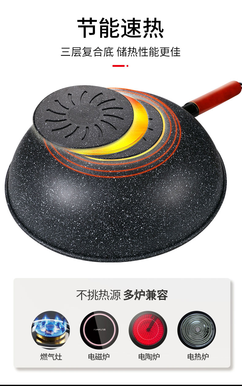 麦饭石炒锅不粘锅平底锅家用多功能炒菜铁锅电磁炉燃气灶通用