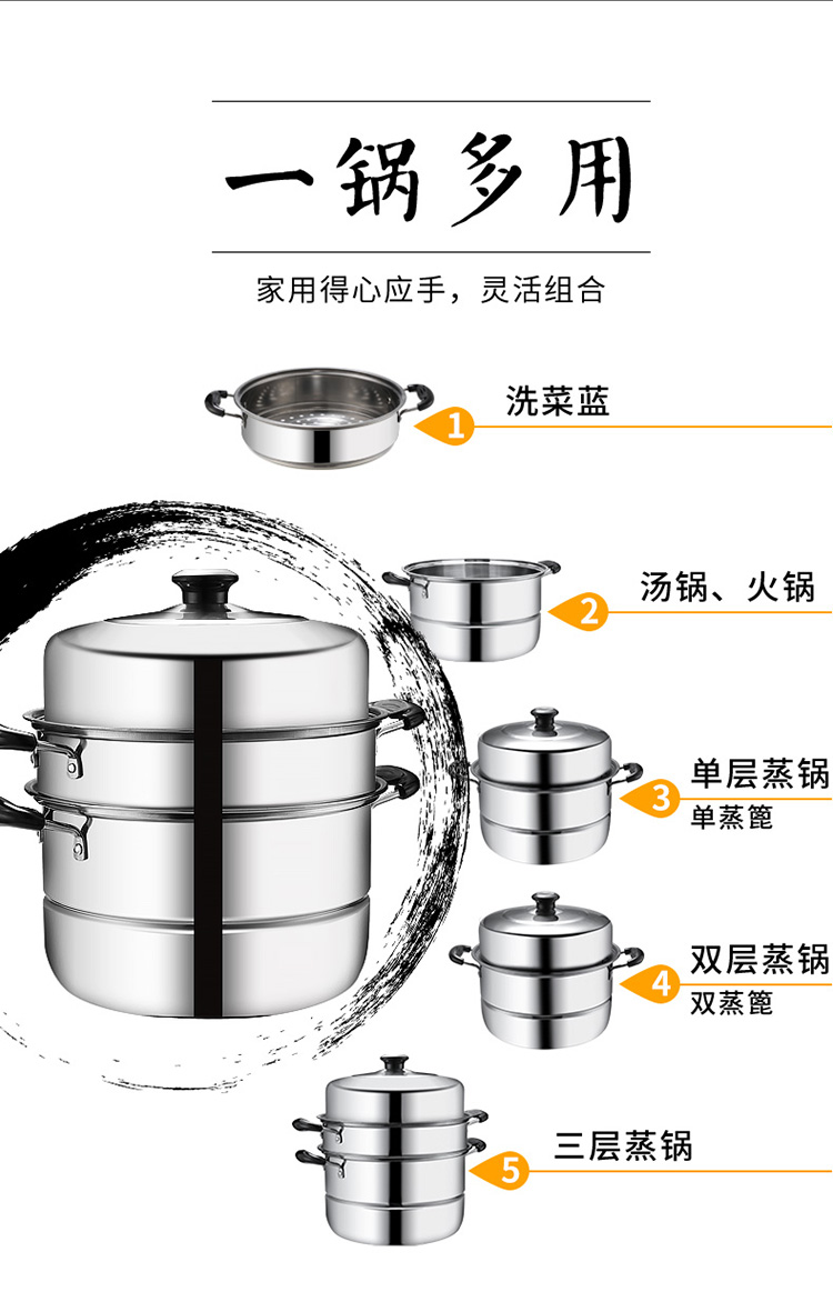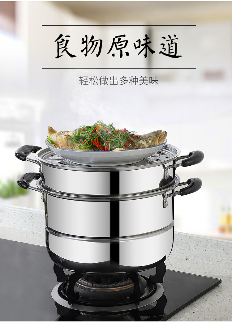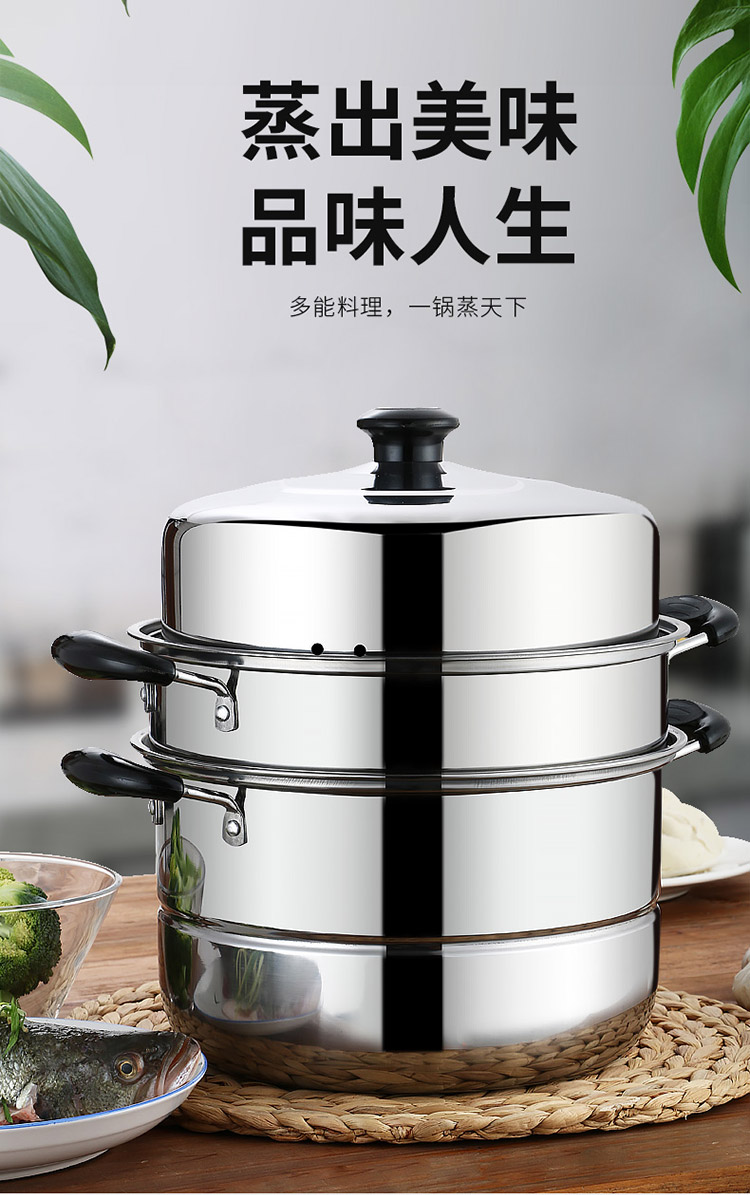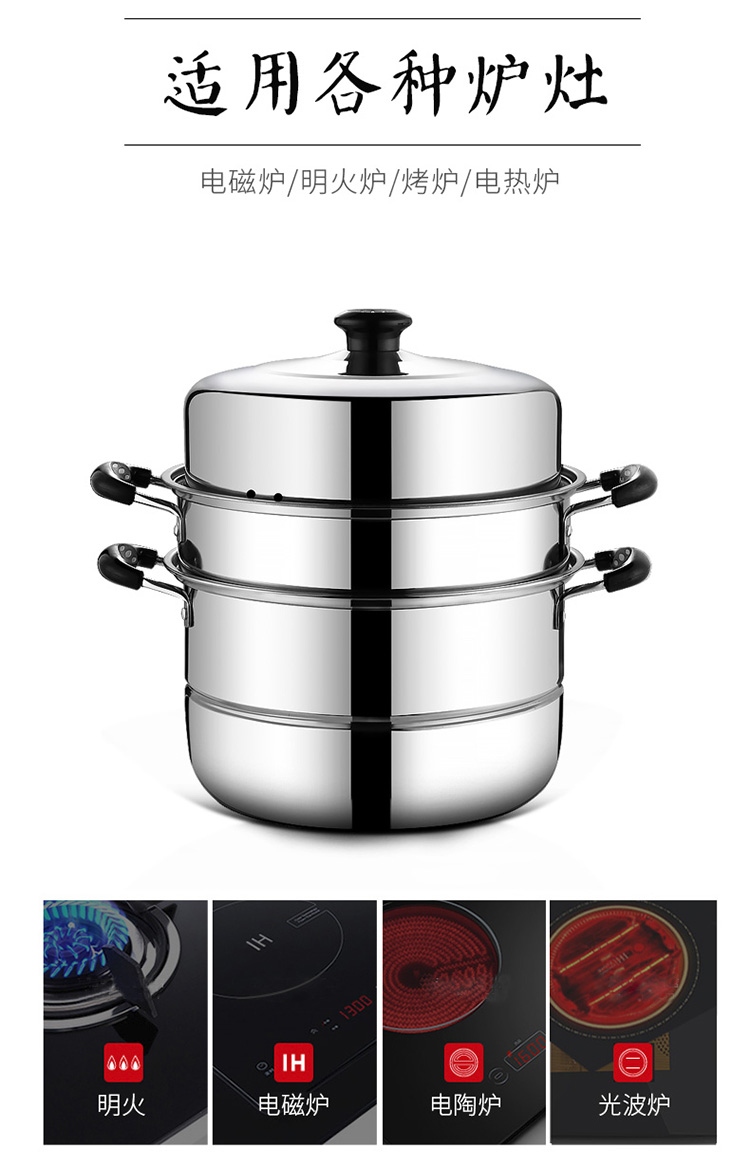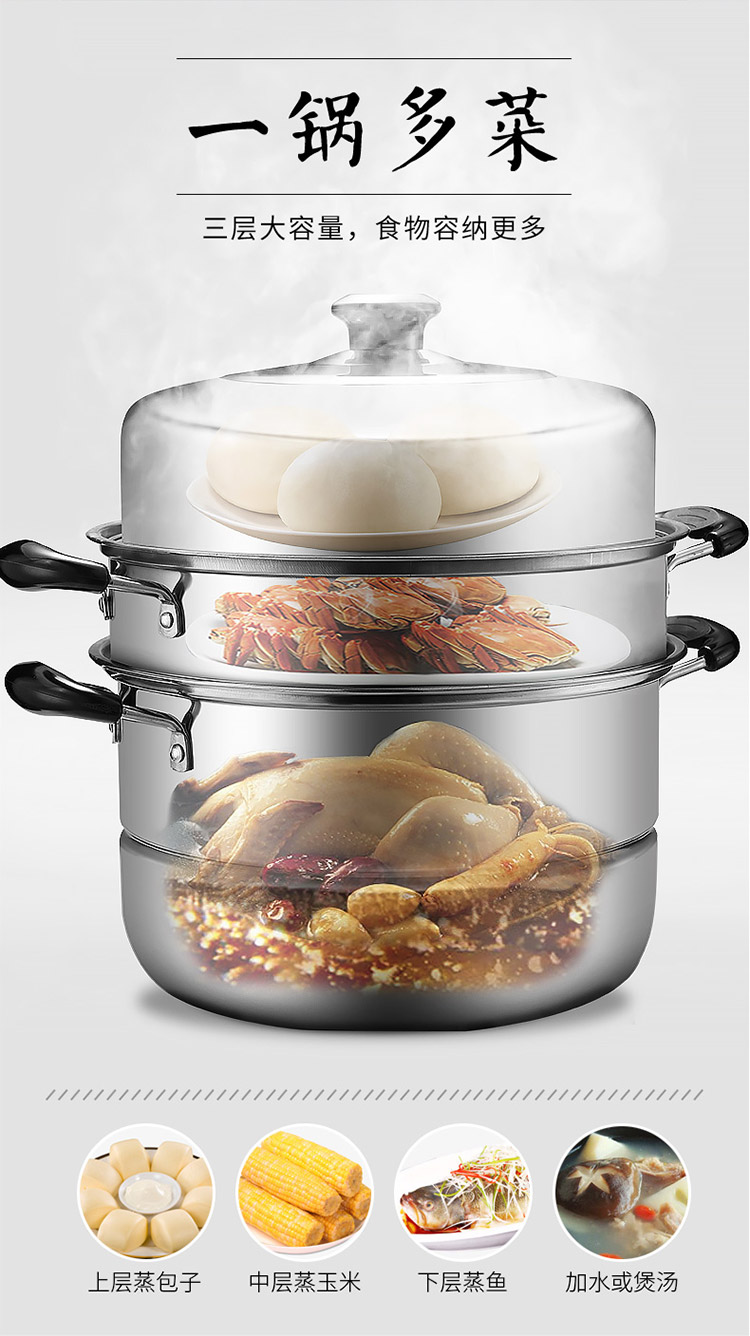 不锈钢蒸锅大号家用3三层蒸馒头的蒸笼加厚电磁炉煤气燃气灶专用