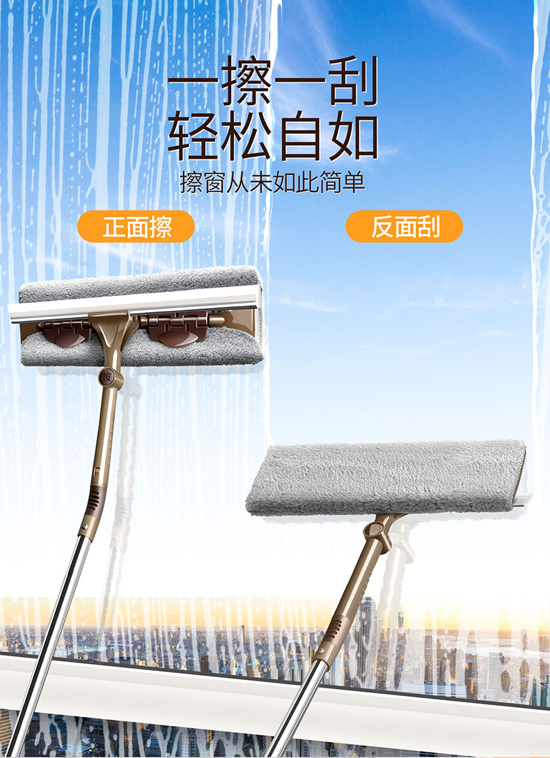 擦玻璃神器家用高层楼伸缩杆双面擦刷窗户刮水器刮刀清洗清洁工具