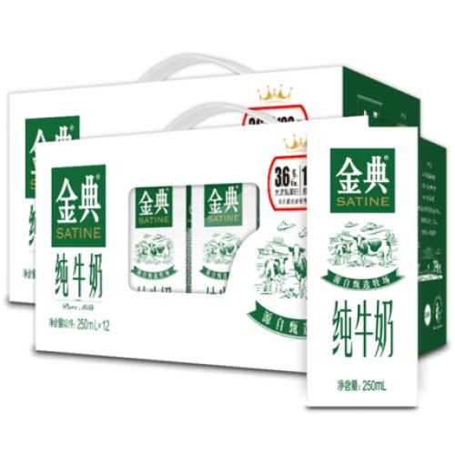 伊利金典纯牛奶250ml*12盒*2箱学生成人儿童早餐牛奶整箱批发